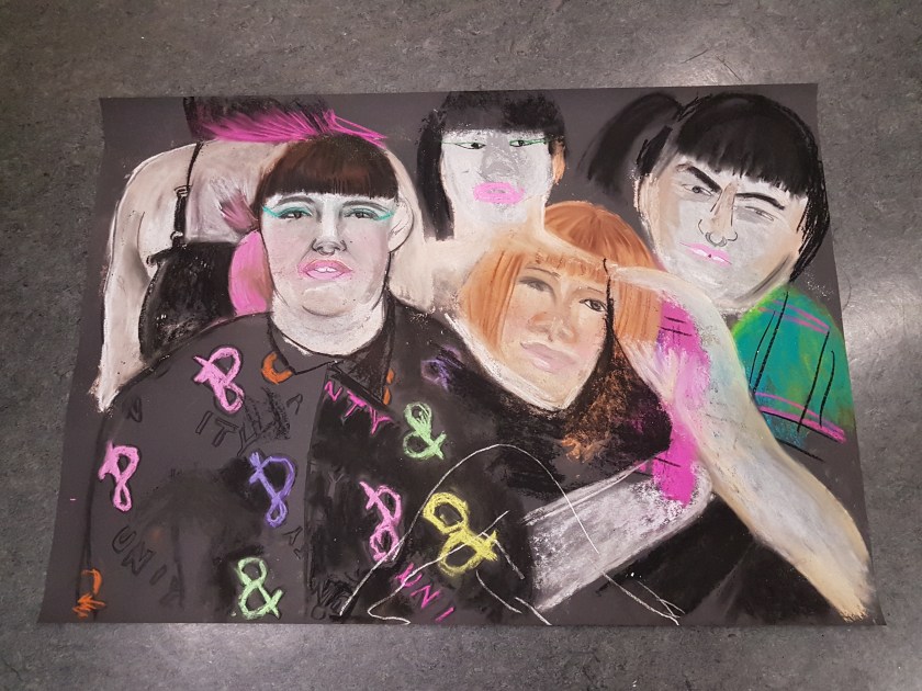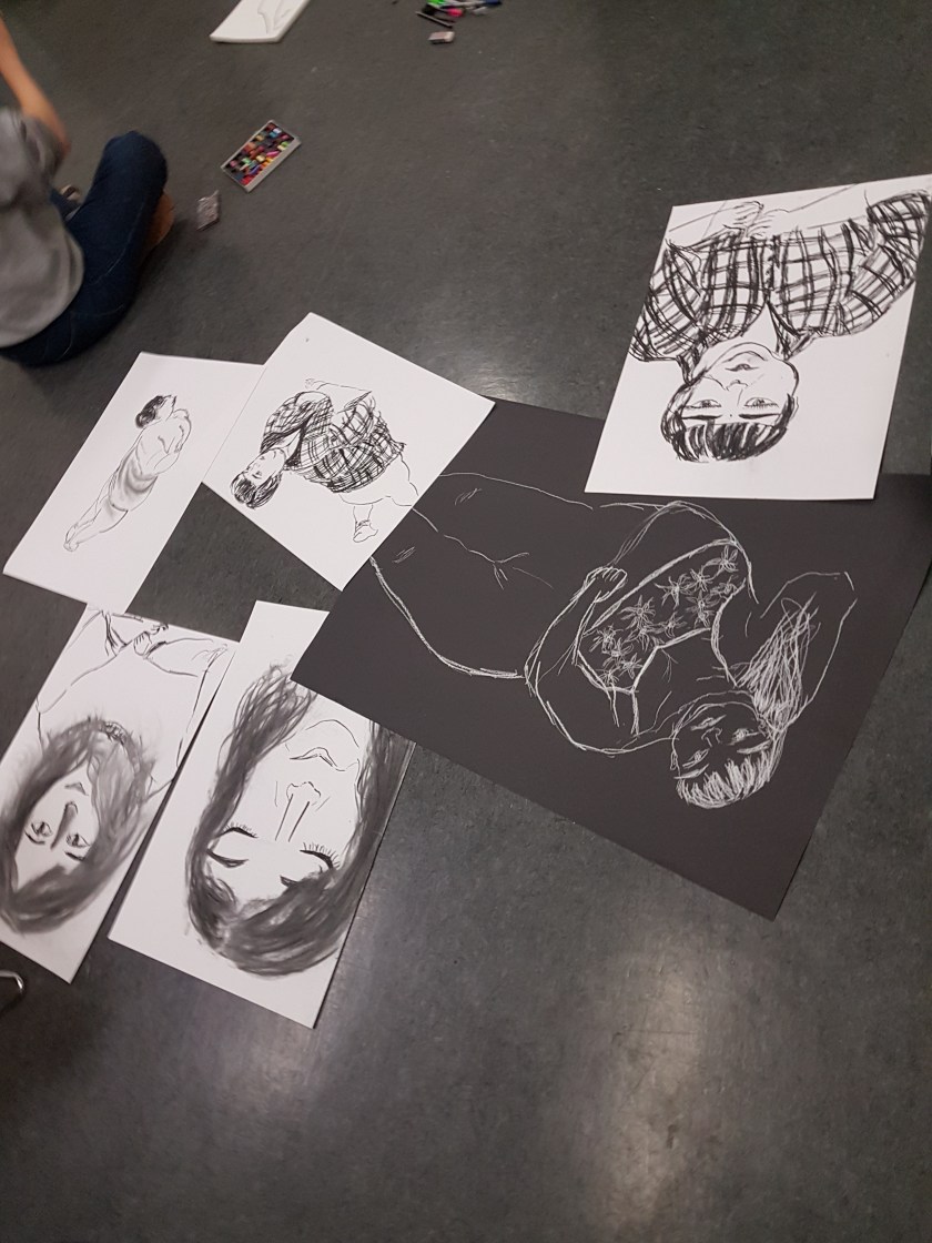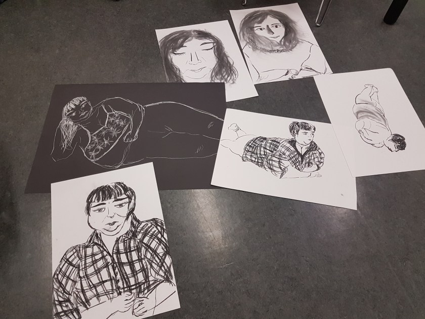 As part of my role as Post Graduate Ambassador for Camberwell I organised a drawing workshop, aimed at fat post grad students. The workshop was in response to a piece of work I find very repulsive at the Wellcome Collection, with the goal of creating a safe space for fat post grad artists to come together and celebrate our bodies. We ran the workshop on Monday 10th December at CSM for 2 and half hours, and I was very excited to meet fellow fat creatives. Unfortunately it didn’t go as I envisioned. There ended up being only two fat people in attendance- myself and my friend who is not from UAL whom I invited. The other attendees were not fat by most societal standards, and this was something that caused both myself and my friend a lot of anxiety. Where we had hoped to be in a room full of people like us, we instead felt incredibly anxious and judged.
