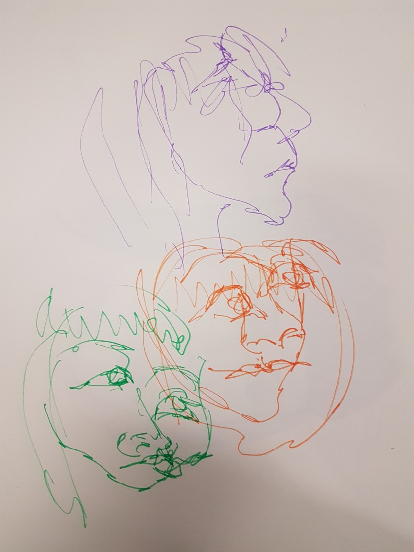 I started off trying to realistically capture the forms and shading using pencils and pastels, but I wasn’t entirely happy with my efforts, so I then used blind contour drawings in felt tip pens to warm up a little, before shifting back to pencil, the moving on to simple line drawings using just a fine liner pen to capture the forms. I have been struggling lately to motivate myself to get out and make art, due to overworking and poor mental health, so even though I am very critical of the drawings themselves I am deeply proud of myself for getting out and travelling across London to the V&A to actually make some art.