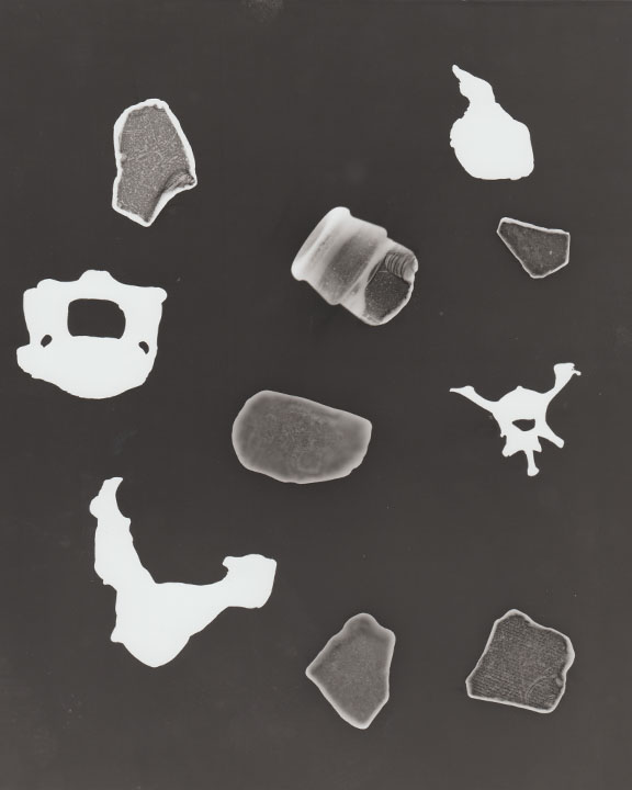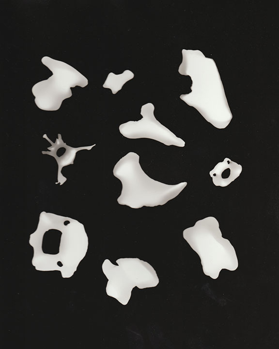 This was the first iteration of my project focusing on the River Thames, made during the final year of my degree in Graphic Design at Camberwell. I wanted to go in a more sculptural direction even at this point but I felt like I needed to stay in the realms of 2D work, given the course I was studying- I do tend to prefer quite physical, handmade processes though and I spent a lot of my final year in the darkroom learning how to create work. The above images are all photograms, created by laying photographic paper on the bed, placing objects on top, and then exposing the set up to light. The first 12 images are the final images I submitted to be marked as my final work, the rest are some of my tests- I varied the strength of the light, the size of the aperture, the kind of photographic paper (fibre based or resin, and matt, glossy or semi gloss) and the exposure time for each set of objects creating multiple prints until I was satisfied. I developed all of the photograms by hand using the traditional black and white process in the darkroom, which was something I particularly enjoyed. For me this project was about exploring the forms of the objects, and the idea of curating them into groups based on different things- such as material, form, and what kind of exposures worked best. I visited quite a few museums to research how objects and artefacts are organised for public displays, and whilst this definitely informed by approach I enjoyed playing with different groupings and layouts through many test prints.