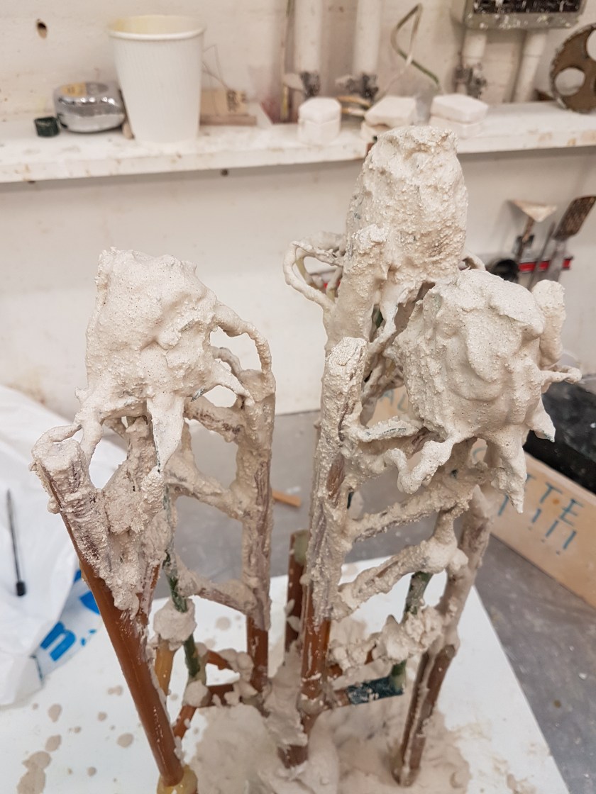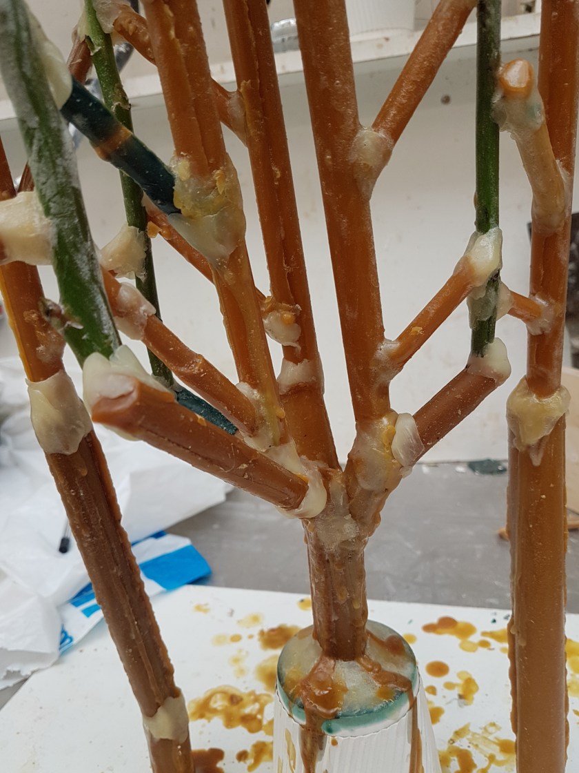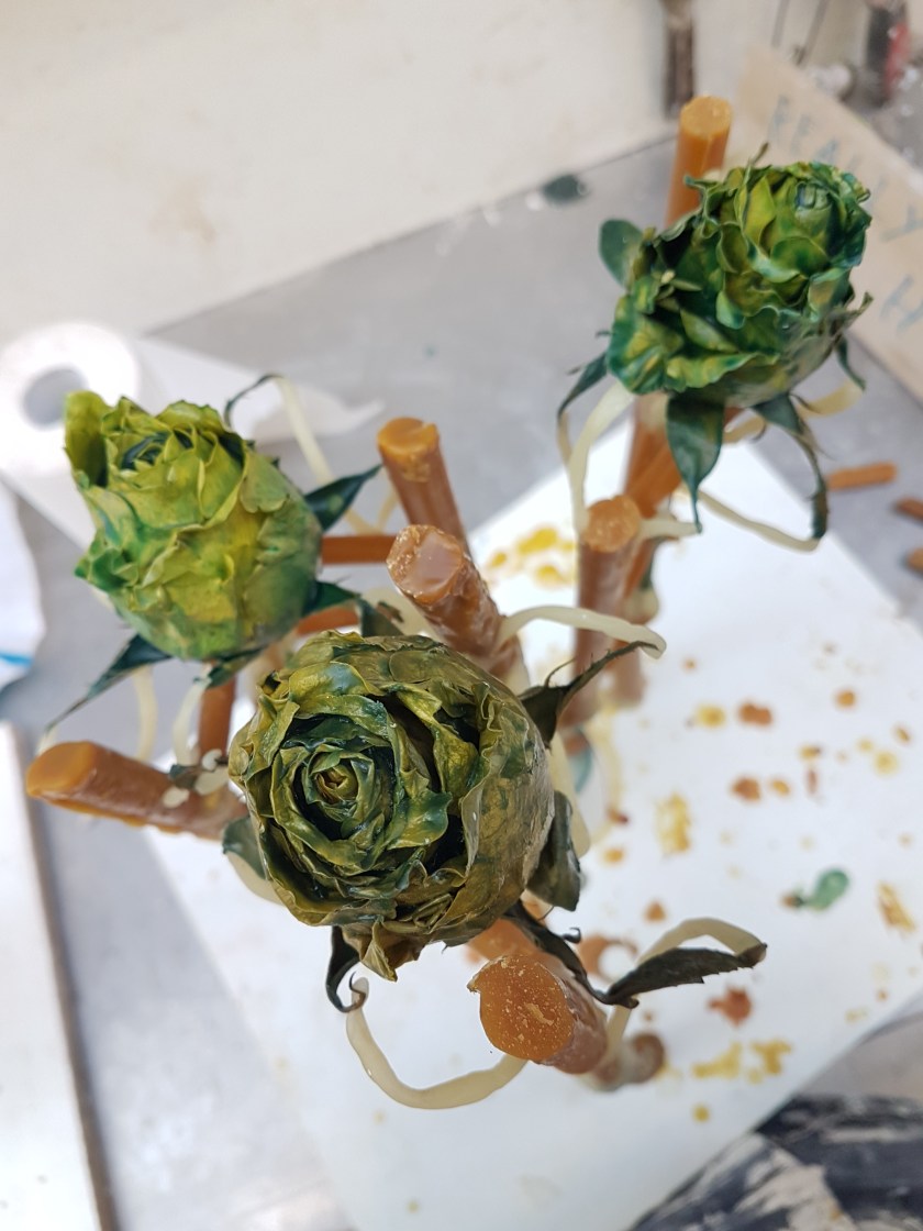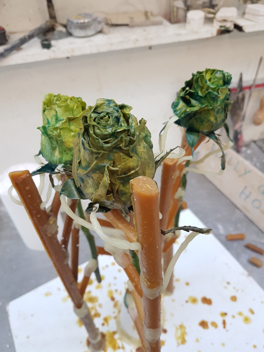 I also ended up going on a walk to the flower shop in Camberwell with Ellen, a BA Sculpture 2nd year student, and we are going to be doing some bronze casting together. We are both interested in nature, and capturing fleeting moments (and both want to make Christmas gifts for loved ones) so we bought flowers from the shop, and also collected foliage on the way back. We then dipped those in wax, and the next stage is to use a hair dryer to set the wax, and then we can build the moulds- the plants will burn out directly in the kiln so there is no need to make hot rubber moulds and waxes. The wax will help to stabilise the plants and make them a bit thicker, so that they will be more likely to come out in the pour. I know it isn’t directly related to one of my projects but this is something I’ve wanted to do for a while and I feel like I might as well give it a go whilst I have the opportunity.